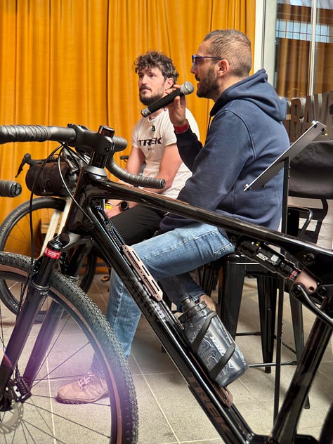 Abbiamo parlato di gravel, di bikepacking, di manifestazioni, di eventi paesani, di trail italiani ed esteri. Avremmo parlato per ore…ma il tempo come al solito è tiranno e ci siamo limitati ad una semplice chiaccherata!